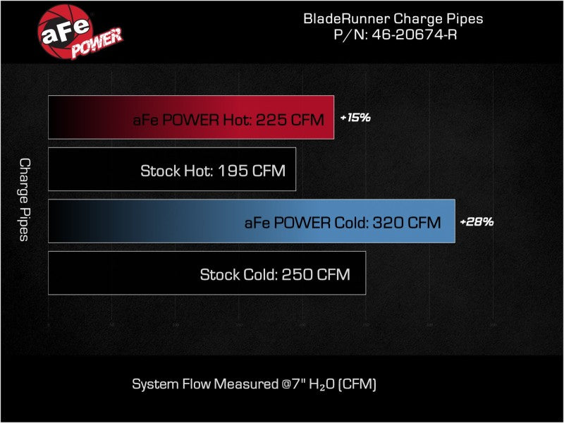Smooth transitions in the mandrel-bent aluminum pipes decrease turbulence and minimize pressure loss, increasing horsepower and torque. This charge pipe kit provides a smooth transition between the turbo and the engine for lower operating temperatures and increased power. This kit includes high-quality, stainless-steel, SmartSeal clamps and heavy-duty, 5-ply, polyester reinforced silicone couplings for superior strength and durability. Finished in textured red powder coating with a unique laser-etched aFe POWER logo for a custom look.
