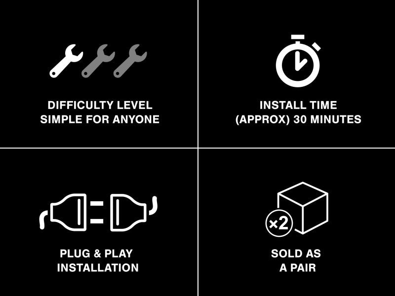 Your 1997-2018 Jeep Wrangler will truly stand out on the street with these state-of-the-art Axial LED Headlights with High and Low Beams. Featuring a longer beam distance, better visibility and reduced glare, your Wrangler's lights will have an outdoor look that fits the vehicle's rugged appearance. Raxiom designed the headlights with your safety in mind. With a bright, white 5600K light, each headlight puts out 40 Watts. These lights are the perfect replacement for your dim factory headlights. Crafted from high-quality materials. These IP67 waterproof Axial LED Headlights are made with tough black aluminum housing that will last you for an extended period of up to 15,000 hours. These Axial LED Headlights with High and Low Beams are made to be easily installed on your Wrangler. Made to be fully plug-and-play without any cutting or modifications, installation will take approximately 30 minutes. These aftermarket LED Headlights are intended for use with factory halogen headlight equipped models. In order to use these aftermarket LED Headlights on a Jeep that is already factory equipped with LED headlights, you will require a set of factory halogen headlight buckets – not included.