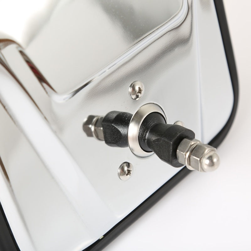This chrome square mirror head from Rugged Ridge provides a replica of the factory original so you maintain that OE look while replacing those worn mirrors and gain a sleek look in return. Bolt on application for a direct fit and easy installation.