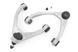 Take your truck to the next level with Rough CountryΓÇÖs most durable Upper Control Arm to date! Rough CountryΓÇÖs Forged Upper Control Arms feature a solid, 1-piece design made of forged aluminum for superior strength and durability. This forged design outperforms all other types of arm construction, with no welding weak spots that could bend or break.\Rough CountryΓÇÖs Forged Upper Control Arms feature POM ball joints for a greater range of motion offering more wheel articulation than standard or OE replacements. These ball joints feature a Polyoxymethylene ball race with an extremely low coefficient of friction for longer life, and a larger ball diameter to improve range of motion with a maintenance free design. Each ball joint is fully greaseable.\Rough CountryΓÇÖs Forged Upper Control Arms also feature durable rubber bushings rubber bushings for superior quality and durability.