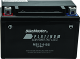 If you're looking for a maintenance free and non-spillable battery for your bike, the Platinum AGM battery by BikeMaster® is for you. Manufactured from absorbed glass mat that captures electrolytes, these batteries have a longer storage life and higher performance than standard wet batteries. They are permanently sealed so that you do not need to check levels or add water. This battery by BikeMaster® comes with a one-year warranty.