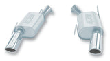 For over 4 decades, Borla(r) Exhaust has been the choice of Mustang experts, from the Cobra-R SVT Mustang to the Ford GT. Major players in the racing industry and leading tuners from Roush, Steeda, Saleen and Ford Racing to the Shelby 427 Cobra have relied on Borla(r). This awesome Axle-Back system bolts on, is lighter than the factory system, includes our famous S-Type mufflers with outstanding flow numbers that generate great power enhancements, and features bright chrome on T-304 stainless steel tips. These attributes, coupled with an aggressive sound of power and awesome big tip, proclaim this Stang is all business. Airflow management and exhaust engineering is a science with which Borla(r) has more experience than anyone in the exhaust aftermarket. The performance matches the famous Borla(r) systems of the past but with a unique muffler and exhaust configuration canceling additional high frequency sound waves. Delivering a significant increase in CFM from the factory system which, as most engine builders will confirm, accounts for the dramatic power improvements. Perhaps more importantly, this added flow maximizes performance for other aftermarket enhancements installed on the Mustang because all Borla(r) exhaust products are tuned for maximum output from any aftermarket performance upgrade. Two Axle-Back options are also available: an aggressive S-Type (PN 11750) and a more mellow Touring (PN 11752) both replace only the over-the-axle pipes, mufflers and tips. Borla(r), the original pioneers of high-quality, T-304 austenitic stainless steel (superior to 409 or aluminized steel) free-flow exhaust utilizes patented award and race winning technology to deliver quality, sound, performance gains and enhanced fuel economy all with an easy bolt-on installation. Unsurpassed written Million-Mile Warranty.
