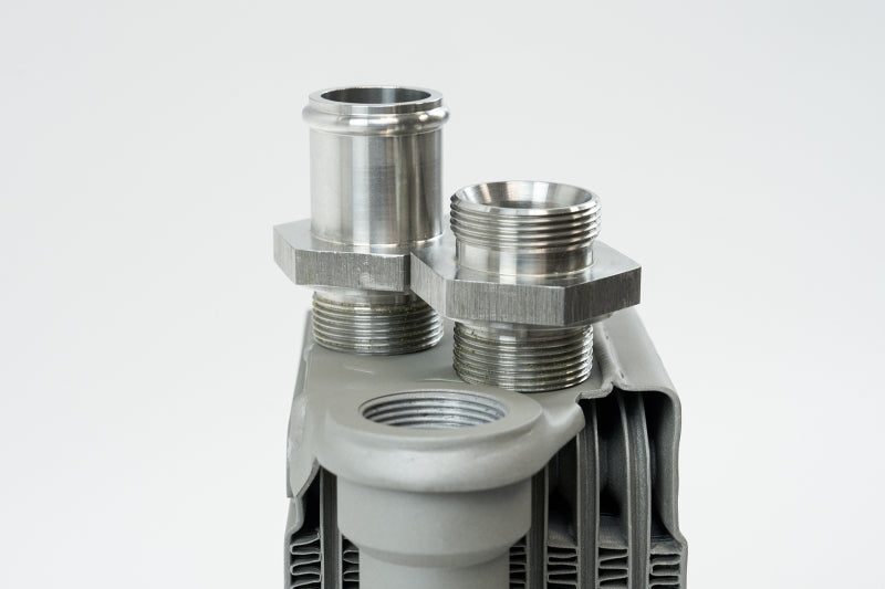 One of the goals of the CSF 911/930 Engine Oil Cooler was to have a single unit that could fit both older (65-71) and newer models (72-89). The solution may seem simple, but engineering the two upgraded stainless steel fittings so there was no oil flow restriction took some extra design work. CSF took some inspiration from the CSF 911/930 Turbo Fender Oil Cooler (CSF #8168) using a similarly designed "Widemouth Fitting". The threaded M30 "Widemouth Fitting" for the 65-71 models maintains the optimized inner diameter (ID) of the oil pipe to maximize flow through the oil system. The "Widemouth Fitting" offers 50% greater flow capacity over the OEM connection. The machined in-house Stainless Steel fittings offer increased strength and durability over the OEM Aluminum slip-on tube (72-89 models) and threaded M30 fitting (65-71 models). Both OEM connections are common sources of leaks. CSF also includes two high quality copper crush washers to offer the best possible seal and prevent any leaks.