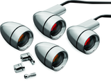 Set of four streamlined lights come with Kuryakyn Deep Dish Bezels, Smoke Lenses and Colored Incandescent Bulbs