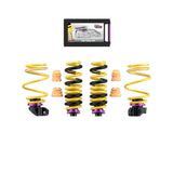 KW (H.A.S) Height Adjustable Spring kits are a great alternative to conventional lowering springs. You are no longer stuck with a fixed lowering height. KW H.A.S. systems allow you to adjust the vehicle ride height with the KW height adjuster even after the kit has been installed. Your vehicle not only gets a more dynamic look, but also the steering behavior and response of the standard dampers becomes more agile. All driver assistance systems and comfort features of a factory adaptive or electronic suspension remain operational and work harmoniously with our vehicle specific spring set up. KW uses high-quality springs made of chrome-silicon steel with spring rates designed specifically for each respective OE suspension damper and wheel load. KW's expertise and engineering ensure the spring rates will pair perfectly with the different damper characteristics of your factory adaptive electronic suspension. Along with the use of high quality materials and the included KW ride height Adjustment - mechanisms, our KW H.A.S. kits always includes the vehicle-specific bump stops with dust protection system to protect your factory suspension against wear & tear caused by road grime and debris. Similar to a coilover suspension, the KW H.A.S kit allow a continuous adjustable ride height within a tested range, something not possible with conventional lowering springs. The dust protection elements and spring perches included in the delivery, when applicable, are always adjusted to the maximum technically possible lowering, typically limited by the factory dampers. With KW height adjustable springs, a sporty and harmonious driving behavior can be achieved without the driving dynamics of performance-oriented vehicles suffering. As with all KW suspension products our engineers develop vehicle specific parameters and spring specifications which undergo comprehensive testing on the Nurburgring Nordschleife and in our KW 7-post Driving Dynamic Test Center.