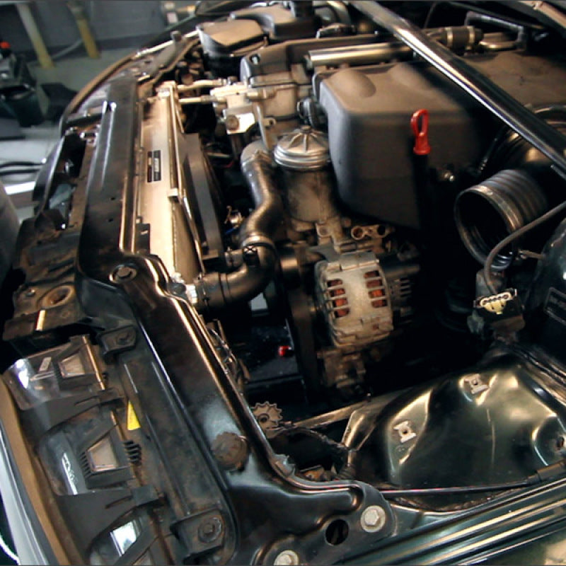 Keep your E46 M3 cool with the Mishimoto Performance Aluminum Fan Shroud Kit! This unique electric fan shroud setup completely eliminates the stock, failure-prone mechanical fan. The fan shroud mounts directly to both stock and Mishimoto radiators and includes a 16in high-flow electric fan that produces over 1850 cfm of airflow. Our in-house Dynojet testing has shown a 5 whp gain from 6500-7500 rpm and 1-2 whp gains over a majority of the power band after removing the factory clutch fan. Optionally, this kit can include an adjustable fan controller and wiring kit, which will provide the user with total control over coolant temperatures. The Mishimoto BMW E46 Fan Shroud Kit includes a removal tool for the clutch fan as well as all hardware required for installation. This fan shroud has a brushed finish that provides a subtle accent for your engine bay. As with all our products, this fan shroud kit includes the Mishimoto Lifetime Warranty, ensuring superior product quality and craftsmanship.