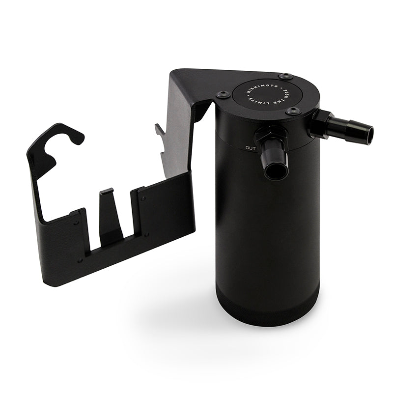 The VQ35DE has long since been the workhorse under the hood of plenty of Nissan and Infiniti products, so give those intake components the protection they deserve with the Mishimoto 2003-2006 Nissan 350Z and 2004-2007 Infiniti G35 Direct Fit Catch Can Kit. These cars were built to be driven to their limits, but the unfortunate side effect of those harsh driving conditions is blow-by., which makes its way back through the intake system, and can build carbon on these components, reducing the power and efficiency of your G or Z. Our complete kit utilizes a single 6061 aluminum tall catch can that mounts in line with the VQ35DE?s PCV system using chemical resistant, OEM style flat black hoses and CNC-machined aluminum fittings. Our can is secured with a sturdy, application specific bracket which also doubles as a new mount for your Nissan or Infiniti?s power steering reservoir. Where our 350Z and G35 Direct Fit Catch Can Kit adds a layer of stylish protection to your engine bay, It's what?s on the inside of the can that counts. Our tried and true internal baffle is specifically designed to aid in the condensation and collection of oil droplets and fuel vapors passing through the PCV system. We've also incorporated internal air diverters to ensure a smooth and constant flow of the PCV pressure through our catch can. As an added line of defense, each one of our catch cans has a 50-micron bronze filter installed to trap any potential rogue oil droplets from escaping into the return line. Each one of our cans are sealed with Viton O-rings to ensure what?s collected in our catch can stays in the catch can. Finally, every one of our 2003-2006 Nissan 350Z and 2004-2007 Infiniti G35 Direct Fit Catch Can Kits is shipped with the Mishimoto Lifetime Warranty. Our catch cans are different from most air-oil-separator (AOS) systems on a few levels. First, our catch cans are not heated. This means that all of the blow-by is able to condense in the can, inclu